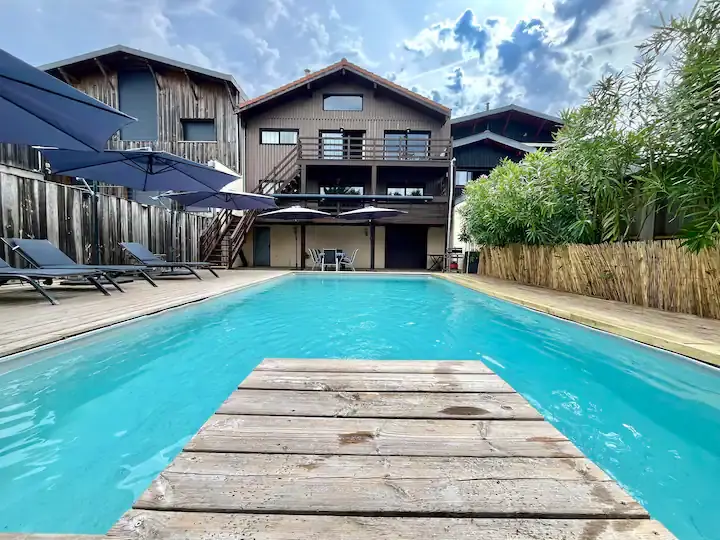 Un véritable coin de paradis entre Arcachon et le Cap Ferret. Elle peut accueillir jusqu’à 8 convives, 3 grandes chambres cosy, un vaste séjour avec cuisine aménagée équipée, 2 salles de bains et un bureau. Possibilité de détente au bord de la grande piscine et bains de soleil avec vue sur la forêt sans vis à vis. Le cadre parfait pour créer des souvenirs inoubliables