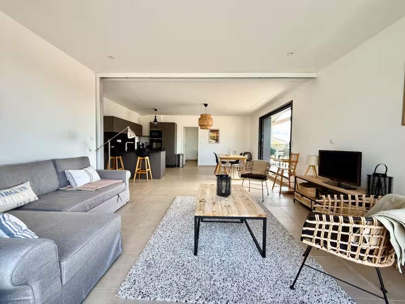 Fonctionnelle et de plain-pied, orientée sud et climatisée. Une terrasse en toute intimité avec piscine chauffée et sécurisée.